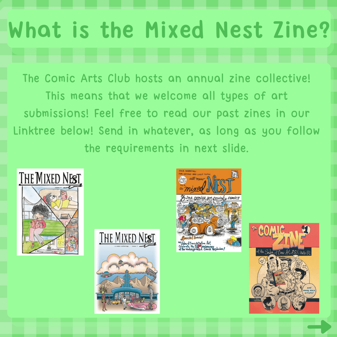 Project Description: Taking over the social media coordinator's position throughout the last few months of the Spring Semester, I designed social media posts promoting Comic Arts Club at SF State (CAC)'s Club Meetings.