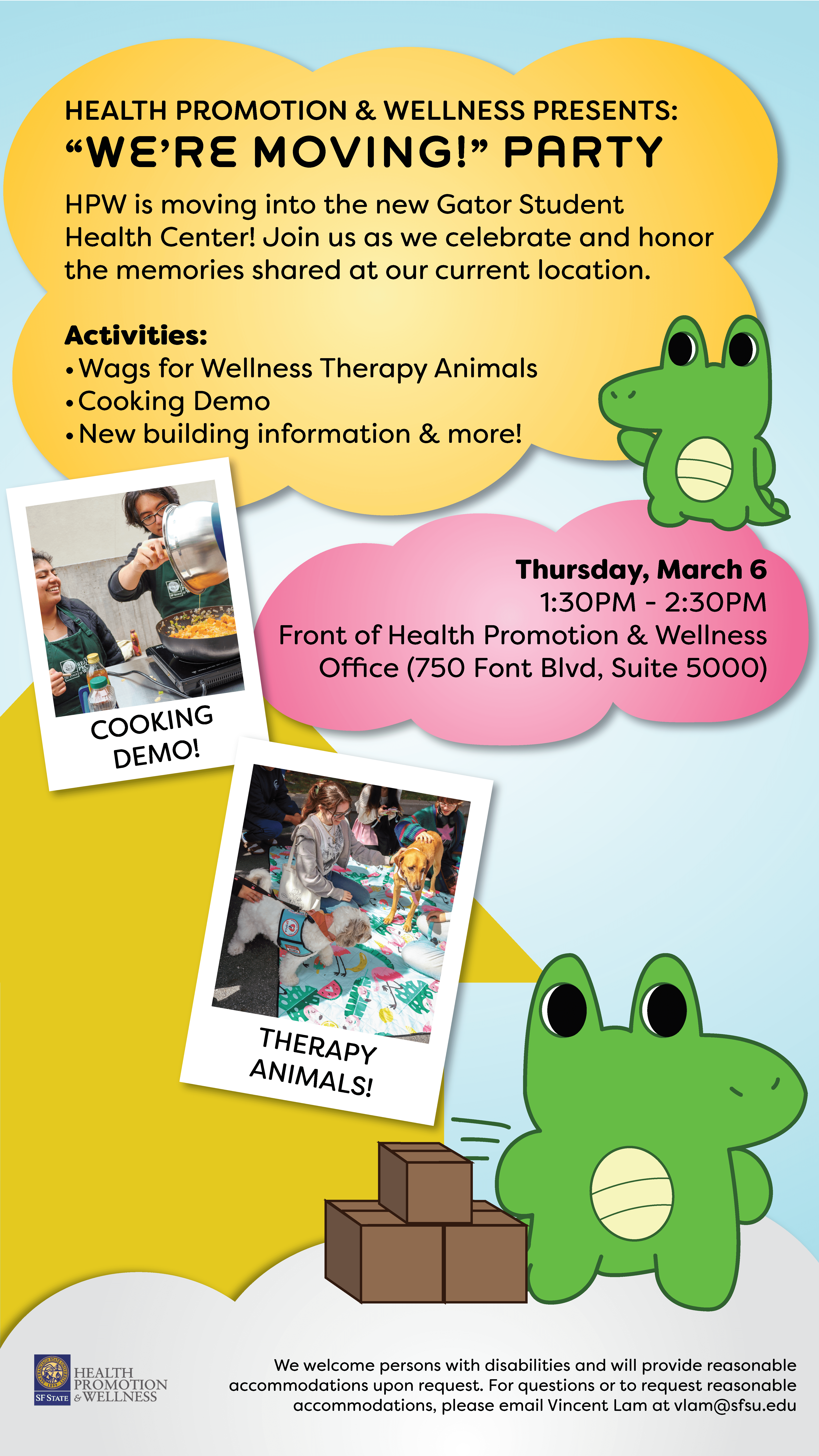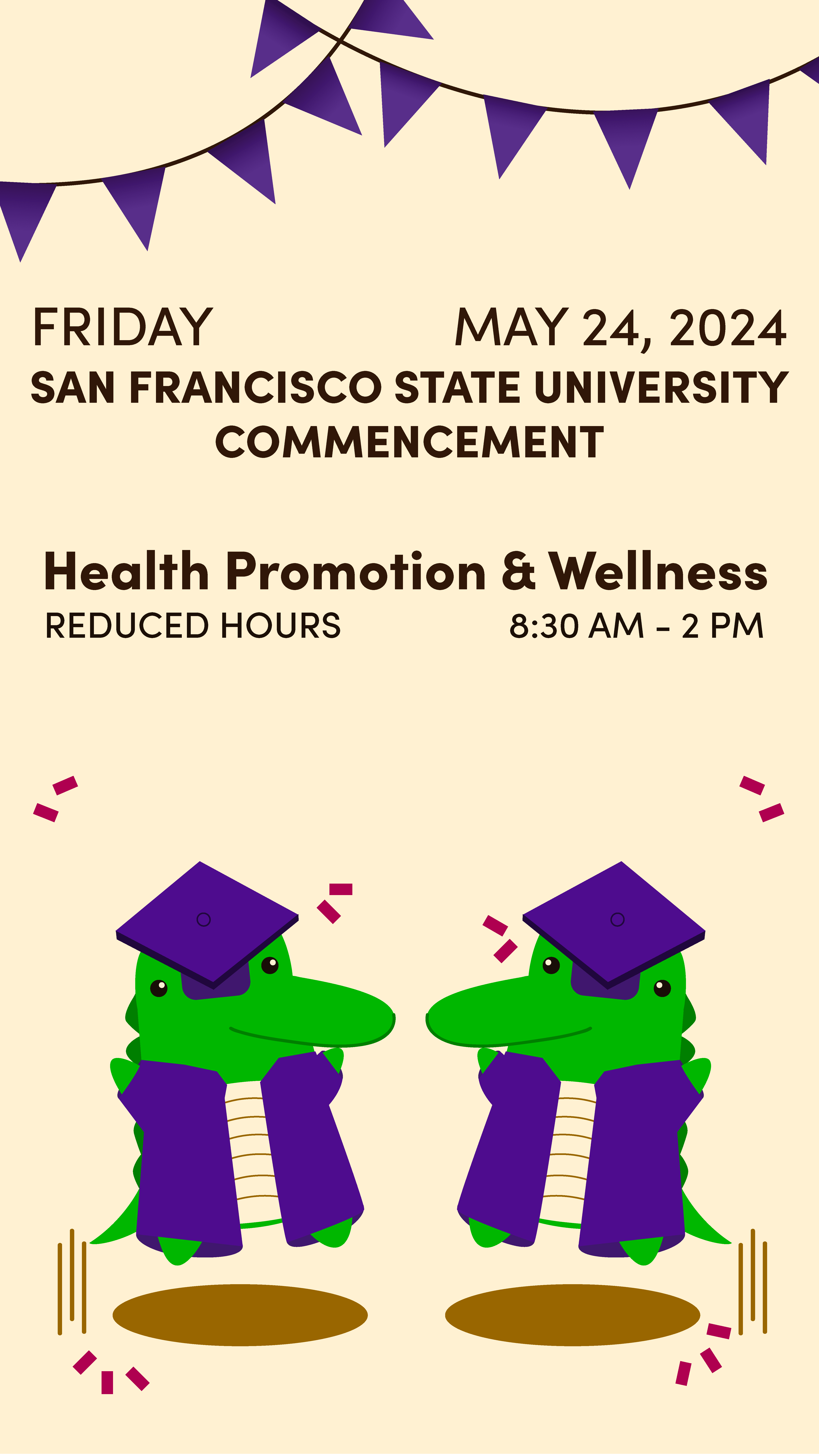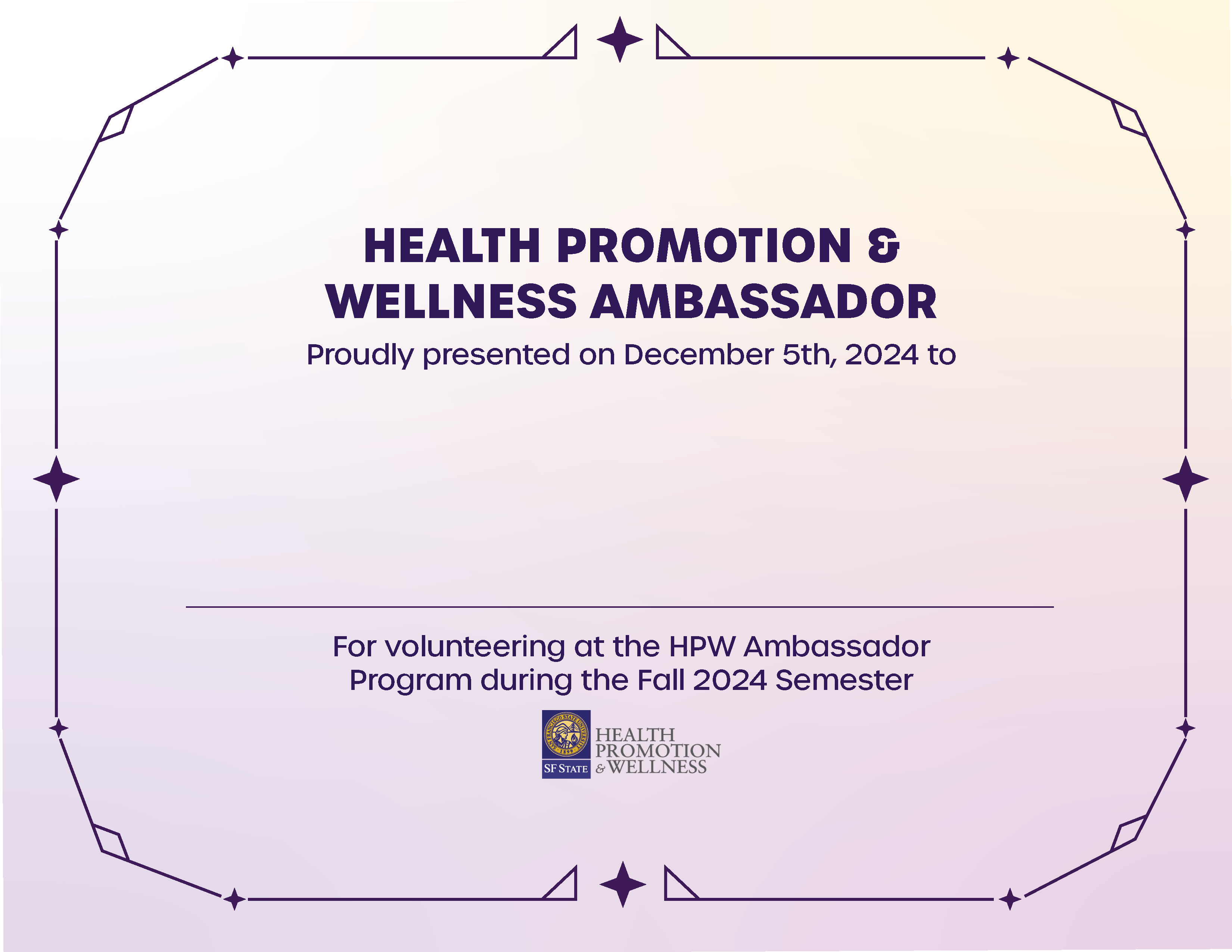 Project Description: As the Marketing Coordinator & Graphic Designer at Health, Promotion & Wellness (now Gator-Health Being), I designed social media posts & resourcesfor 22,000 San Francisco State University promoting health and well-bring.
